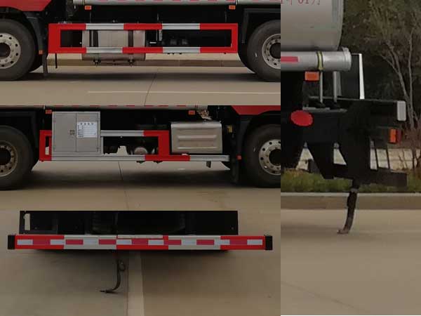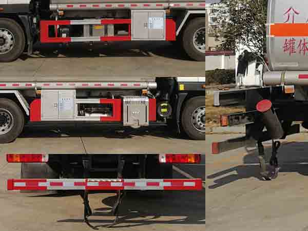 配置  1、該車適用于危險(xiǎn)品運(yùn)輸,運(yùn)送危險(xiǎn)貨物車輛類型為:FL型,類項(xiàng)號(hào):3。運(yùn)輸介質(zhì):汽油,密度:700千克/立方米。罐體有效容積21.4立方米,罐體外形尺寸(長(zhǎng)×寬×高)(mm):7000×2350×1580。2、側(cè)、后防護(hù)材料均為Q235,螺栓連接;后防護(hù)截面尺寸(寬×高)(mm)60×120,下邊緣離地高500mm。3、EBS系統(tǒng)生產(chǎn)廠家及型號(hào)分別為:威伯科汽車**系統(tǒng)(**)有限公司(EBS3)。僅選用排氣管前置、限速裝置(限速79km/h)、前輪盤式制動(dòng)及子午線輪胎的底盤;安裝帶有衛(wèi)星定位功能的行駛記錄儀;發(fā)動(dòng)機(jī)型號(hào)及油耗值(L/100km)為:WP7.270E61/36.79,WP7.300E61/36.79。后軸采用空氣懸架。轉(zhuǎn)向輪安裝輪胎爆胎應(yīng)急防護(hù)裝置。
