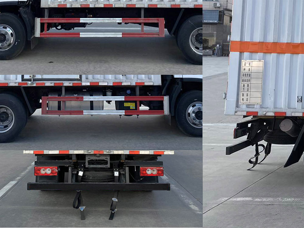 | 其它: | 1、該車適用于運輸危險品。廂體頂部封閉不可開啟。運輸具有獨立容器(瓶)包裝的物品,運送危險物品類項號:8。2、側,后防護材料均為Q235,螺栓連接;后防護截面尺寸100×50mm,下邊緣離地高410mm。廂體側面選裝開門型式及位置,選裝不帶側開門,選裝瓦楞板結構;選裝百葉窗。3、隨底盤選裝排半駕駛室,選裝導流罩。僅選用排氣管前置、限速裝置(限速80km/h)、前輪盤式制動及子午線輪胎的底盤;轉向輪裝備輪胎爆胎應急防護裝置。安裝帶衛(wèi)星定位功能的行駛記錄儀。ABS系統(tǒng)型號:ABS-VI.E;生產企業(yè):廣州瑞立科密汽車電子股份有限公司.ABS系統(tǒng)型號:ABS-E;生產企業(yè):威伯科汽車控制系統(tǒng)(中國)有限公司.ABS系統(tǒng)型號:ABS8.8 ECU 24V,生產企業(yè):東科克諾爾商用車制動系統(tǒng)(十堰)有限公司。發(fā)動機/油耗值(L/100km)對應關系為:CY4SK261/16.09,D30TCIF1/16.19,F2.8NS6B156/15.39,F3.8NS6B156/14.90??蛇x裝ETC車載裝置。 | ||