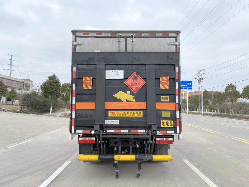 | 其它: | 1、該車適用于運輸危險品,運輸具有獨立容器(瓶)包裝的物品,運送危險物品類項號:3。廂體頂部封閉,不可開啟。2、側(cè)、后防護材料均為Q235,螺栓連接,后防護截面尺寸(mm)φ125,下邊緣離地高460mm。選裝后部無尾板,選裝后部無尾板時后防護材料為Q235,焊接,截面尺寸(mm)100×50,下邊緣離地高460mm。3、僅選用排氣管前置、限速裝置(限速80km/h)、前輪盤式制動及子午線輪胎的底盤,轉(zhuǎn)向輪安裝輪胎爆胎應(yīng)急防護裝置。安裝帶有衛(wèi)星定位功能的行駛記錄儀。ABS系統(tǒng)控制器型號/生產(chǎn)廠家: ABS/ASR-24V-4S/4M/襄陽東風隆誠機械有限責任公司。發(fā)動機/油耗值(L/100km)對應(yīng)關(guān)系為: ZD30D16-6N/17.2,YCY24140-60/16.5, NV30-C6G/17.3, CY4SK261/17.4, YCY30165-60/17.5, CY4BK361/17.9。選裝ETC。隨底盤選裝駕駛室。廂體側(cè)面選裝開門型式及位置,選裝不帶側(cè)開門,選裝廂體樣式,廂體側(cè)面板選裝開百葉窗。僅采用軸距3308mm。尾板收起狀態(tài)水平長度為290mm,尾板質(zhì)量為420kg。 | ||