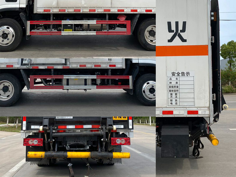 | 其它: | 1、該車為危險(xiǎn)品運(yùn)輸車,運(yùn)輸具有獨(dú)立容器(瓶)包裝的物品,運(yùn)送危險(xiǎn)物品類項(xiàng)號:9。廂體頂部封閉,不可開啟。2、側(cè)、后防護(hù)材料均為Q235,螺栓連接,后防護(hù)截面尺寸(mm)Φ100,下邊緣離地高390mm。選裝后部無尾板時(shí),后防護(hù)材料為Q235,螺栓連接,截面尺寸(mm)120×60,下邊緣離地高400mm。尾板收起狀態(tài)水平長度為280mm,尾板質(zhì)量為350kg。3、整備質(zhì)量含備胎,滅火器及隨車工具;貨廂重量為1050kg;材質(zhì)/厚度:復(fù)合板結(jié)構(gòu)廂體:底板材質(zhì)為Q235,厚度4mm,側(cè)板為外Q235+中間阻燃泡沫+內(nèi)純鋁板,厚度42mm;瓦楞板結(jié)構(gòu)廂體:底板材質(zhì)為Q235,厚度4mm,側(cè)板為Q235,厚度1.5mm。4、僅選用排氣管前置、限速裝置(限速80km/h)、前輪盤式制動及子午線輪胎的底盤,轉(zhuǎn)向輪安裝輪胎爆胎應(yīng)急防護(hù)裝置。安裝帶有衛(wèi)星定位功能的行駛記錄儀。ABS系統(tǒng)控制器型號/生產(chǎn)企業(yè): :YF8/武漢元豐汽車電控系統(tǒng)有限公司,ABS-E/威伯科汽車控制系統(tǒng)(中國)有限公司,ABS-VI·E/廣州瑞立科密汽車電子股份有限公司,YF9/武漢元豐汽車電控系統(tǒng)有限公司。發(fā)動機(jī)/油耗值(L/100km)對應(yīng)關(guān)系為: D20TCIF2/11.22,D25TCIF1/11.16, D20TCIF1/11.22。僅選用3360mm軸距,選裝ETC。廂體側(cè)面選裝開門型式及位置,選裝不帶側(cè)開門,選裝瓦楞板結(jié)構(gòu);廂體前后及側(cè)面選裝開百葉窗,選裝后尾板樣式,選裝無后尾板。 |