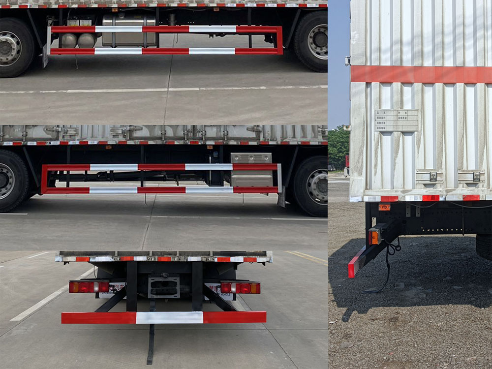 | 其它: | 1、該車為危險品運輸車.運輸具有獨立容器(瓶)包裝的易燃液體物品.運送危險物品類項號:3類.廂體頂部封閉不可開啟.2、側(cè)、后防護材料均為Q235,焊接;后防護截面尺寸(mm)120×50,下邊緣離地高490mm。廂體側(cè)面選裝開門型式及位置,選裝不帶側(cè)開門,選裝貨廂平面或瓦楞結(jié)構(gòu);廂體側(cè)面選裝開百葉窗,選裝后部樣式。3、僅選用1800+5600mm軸距,僅選用排氣管前置、限速裝置(限速80km/h)、前輪盤式制動及子午線輪胎的底盤,轉(zhuǎn)向輪安裝輪胎爆胎應急防護裝置,后軸采用空氣懸架,安裝帶有衛(wèi)星定位功能的行駛記錄儀,隨底盤選裝駕駛室,選裝前部燈具,選裝ETC。EBS型號/廠家:EBS3/威伯科(上海)管理有限公司。發(fā)動機/油耗值(L/100km)對應關(guān)系為:MC07H.35-60/32.45,MC07.31-60/32.43,MC07.27-60/32.43,MC07.25-60/32.43,WP7H270E62/32.15,WP7H245E62/32.15,WP7H220E62/32.15,WP7H320E62/32.60,WP7H300E62/32.60。 | ||