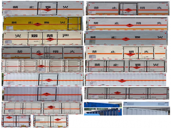 1、復(fù)合板工藝:嚴(yán)格按照公告尺寸制作。外板采用優(yōu)質(zhì)烤漆板(顏色可選:白,灰,檸檬黃)帶百葉窗,內(nèi)飾為導(dǎo)電性能良好的鋁平板有透氣孔,矩形骨架結(jié)構(gòu)內(nèi)部填充防火阻燃材料,復(fù)合加鉚合工藝。廂體四周鋁合金包邊及包角,車廂底板鋪設(shè)防靜電膠皮,廂體前臉50公分高鋪設(shè)防靜電膠皮。后部設(shè)置對開門,右側(cè)單開門,廂體內(nèi)部兩側(cè)安裝捆綁貨物的臥環(huán)。廂體內(nèi)部安裝煙霧報警器,門上安裝防盜報警器。車廂一周粘貼橙色反光帶,箱體粘貼菱形標(biāo)志牌,安全告示牌,危險品牌,箱體安裝示廓燈(前白后紅),拖地靜電帶。