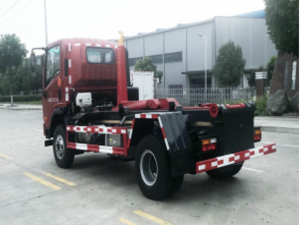 ★勾臂垃圾車的上裝裝有液壓鎖緊機構(gòu),用于箱體鎖緊和打開。