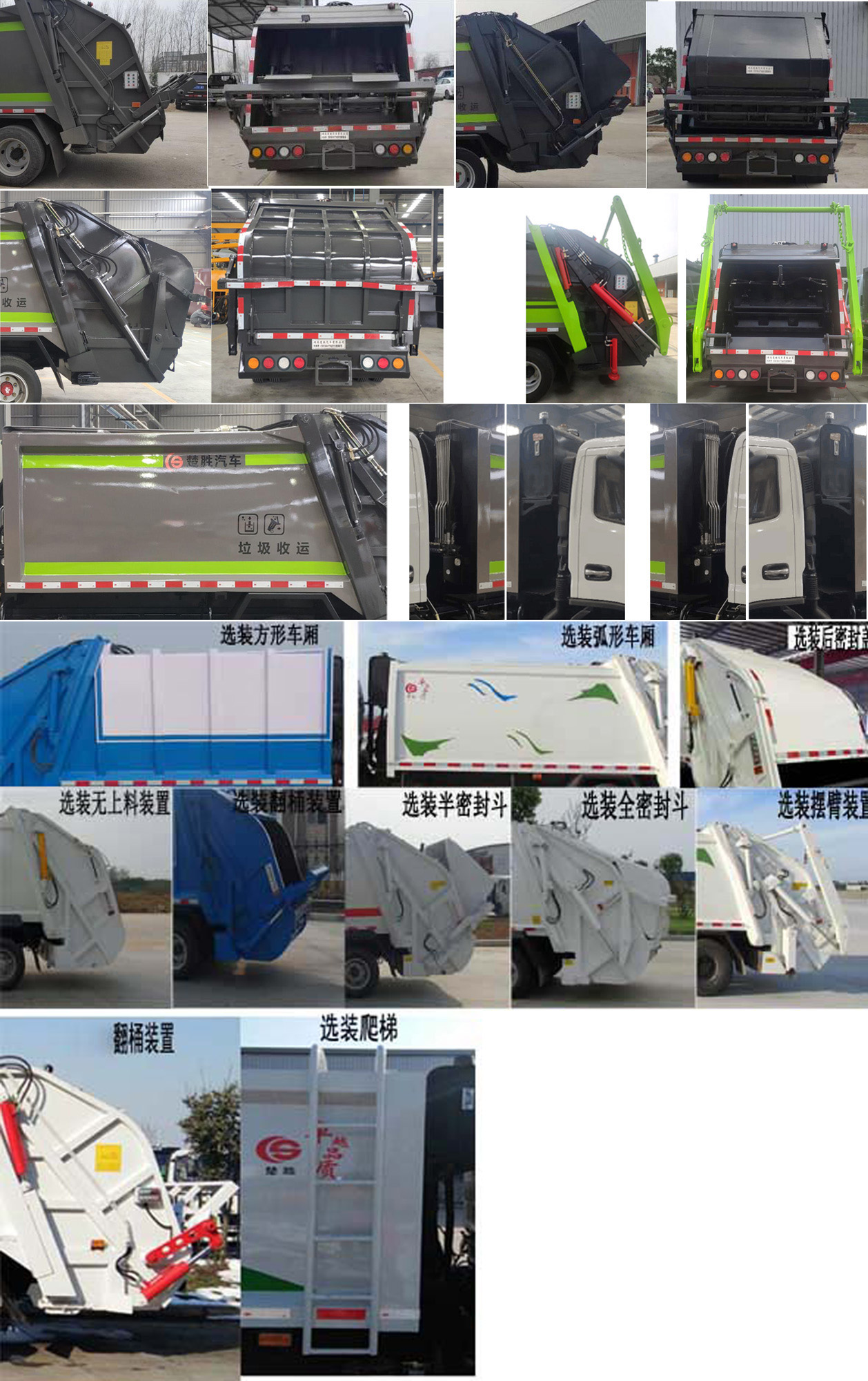 | 配置 | ABS型號:CM4XL-4S/4M;ABS生產(chǎn)企業(yè):廣州瑞立科密汽車電子股份有限公司.選裝ETC;隨底盤選裝駕駛室;該車可選裝方形或弧形箱體,選裝全密封蓋裝置,選裝爬梯。選裝箱體與駕駛室之間多路閥、油箱、液壓管布置。選裝后部工作裝置時整車長度/軸距/后伸(mm)對應(yīng)關(guān)系為:無翻轉(zhuǎn)機構(gòu)6650/3360/-;擺臂裝置6800/3360/150;全密封斗裝置6850/3360/200;翻桶裝置、半密封裝置7050/3360/400。發(fā)動機/油耗值(L/100km)對應(yīng)關(guān)系為:WP3NQ160E61/15.99;側(cè)防護材料采用Q235,螺栓連接;后防護由專用裝置代替,下邊緣離地高度400mm。該車主要專用裝置由箱體、壓縮系統(tǒng)組成,用于垃圾的收集與清運。 | ||