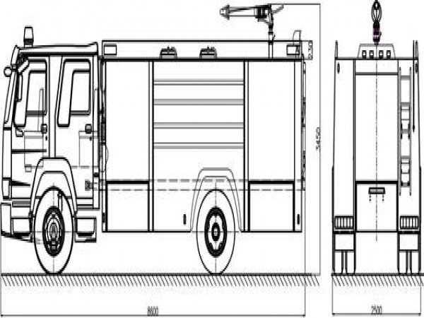 8噸消防車采用中國重汽濟南卡車有限公司ZZ5207TXFV471GF5型二類汽車底盤,原裝雙排駕駛室,乘員2+4人,該車駕乘舒適輕便。上裝采用外露式水罐,整車載液量為水7600kg。器材箱采用高質(zhì)量鋁合金卷簾門。底盤取力,發(fā)動機型號為MC07.34-60,最大功率257kW,通過萬向聯(lián)軸器驅(qū)動安裝在汽車尾部泵房里的上海雄真CB20.10/30.60型中低壓消防泵,可在1.0MPa下穩(wěn)定輸出60L/s的流量;2.0MPa下穩(wěn)定輸出30L/s的流量;車頂安裝成都威斯特消防器材有限責(zé)任公司生產(chǎn)的PS8/60W型消防炮(水罐消防車),流量60L/s,對應(yīng)壓力0.8MPa,最大承壓1.3MPa,射程75m,可360°旋轉(zhuǎn)。同時該車具有比功率大、綜合性能強、操控集中簡便等特點。